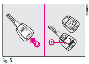 The remote control is built into the ignition key. Press button A-fig. 4 to lock and unlock the doors.